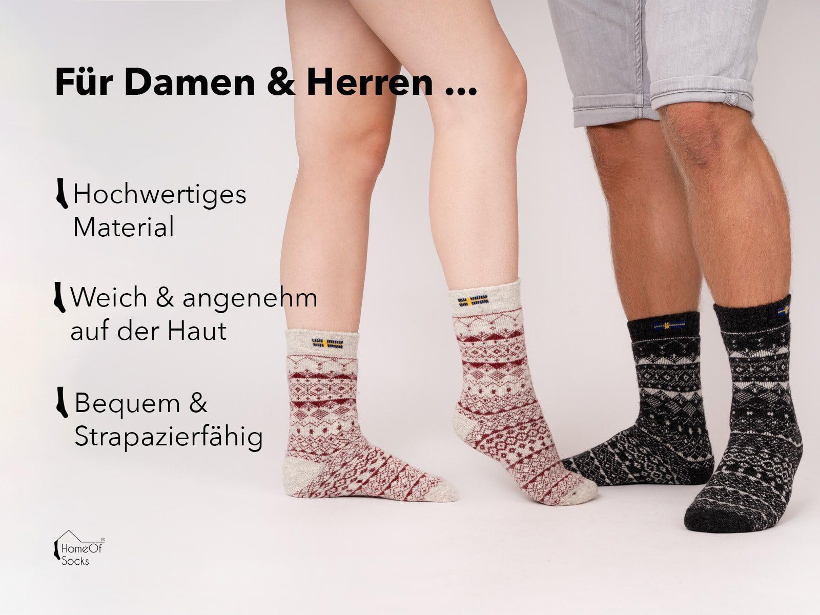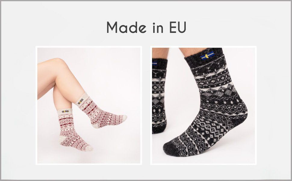 WOOL SOCKS SCHWEDEN: Hochwertige Wollsocken mit hohem Wollanteil aus strapazierfähiger Wolle. Ideal als Sweden Wintersocken Herren und Damen für warme, trockene Füße während der kalten Jahreszeit.IDEAL ALS GESCHENK: Damen- und Herrensocken, ideal als Geschenk für Familie, Freunde und Bekannte. Egal ob zu Weihnachten, Geburtstag, Nikolaus oder im Adventskalender. Perfekt für Menschen mit Liebe zu Norwegen, norweger Socken und Skandinavischen Designs.