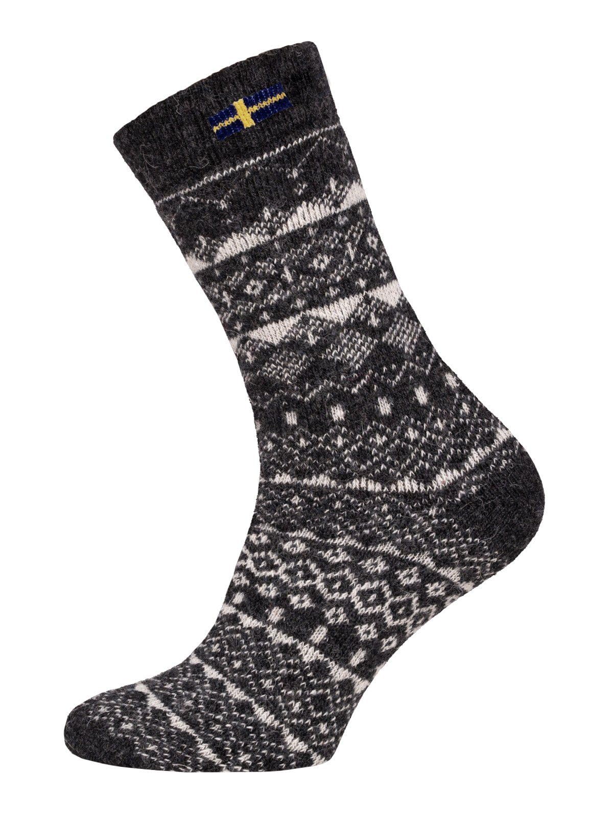 Ein Paar Norweger Socken Damen Und Herren Jacquard Schweden Design Skandinavische Socken Kuschelsocken Aus 80% Wolle Dicke Socken | Anthrazit Gr. 35-38
