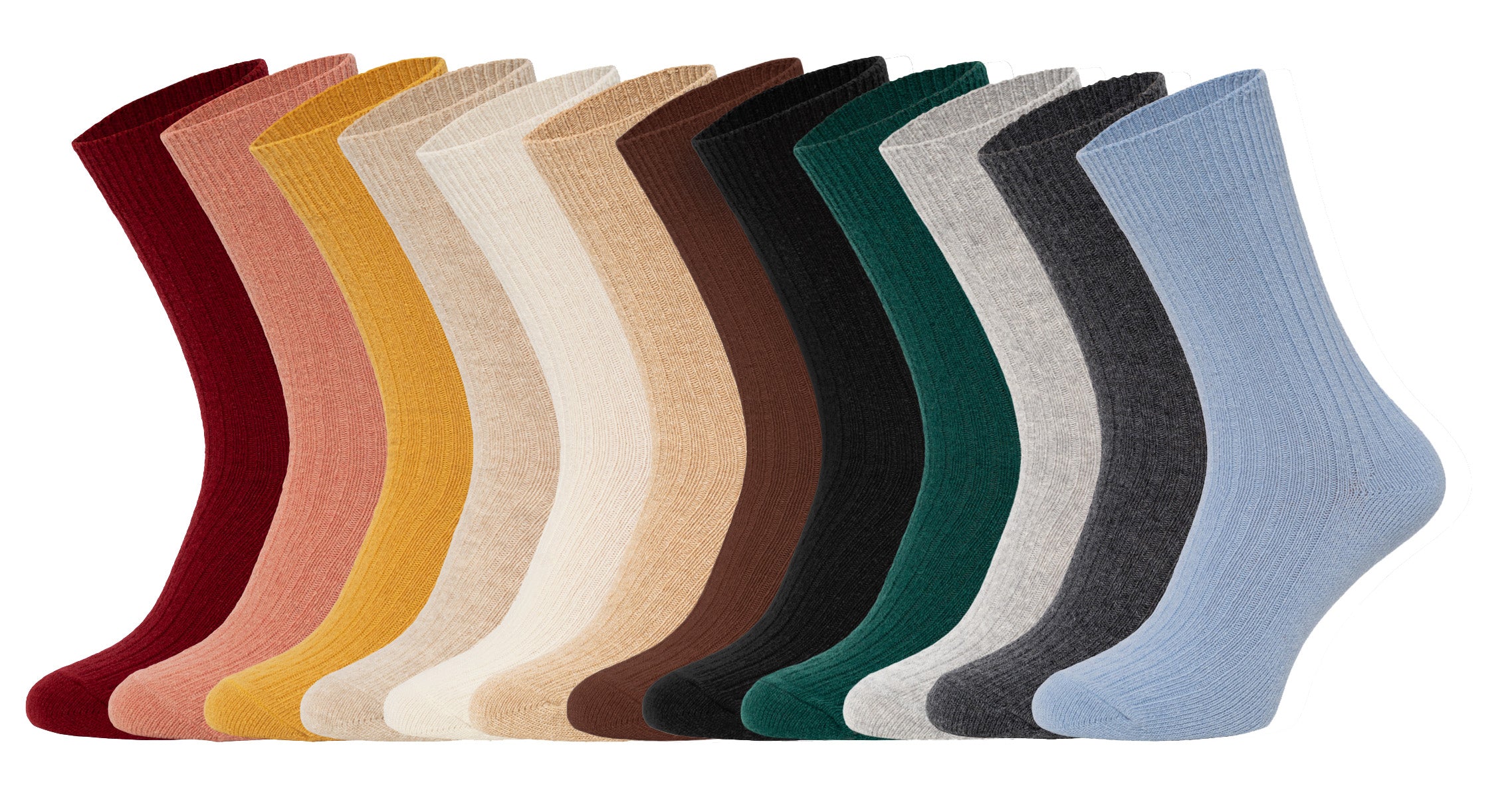 Ein Paar 72% Wollsocken Einfarbig Ripp Druckarmer Bund