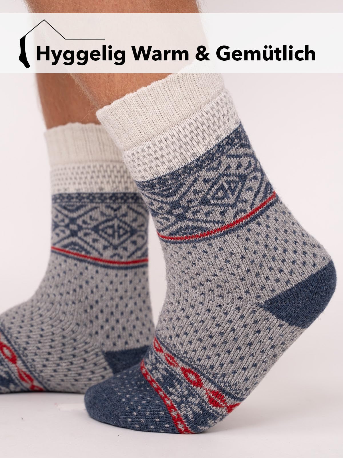 Ein Paar Skandinavische Socken Für Damen Und Herren Skandinavisch Socks Kuschelsocken 45% Wolle Dicke Socken Hyggelig Norwegen Design | Braun Gr. 43-46 WOOL SOCKS NORWEGEN: Hochwertige Wollsocken mit hohem Wollanteil und skandinavischen Muster aus strapazierfähiger Wolle. Ideal als Wintersocken Herren und Damen für warme, trockene Füße während der kalten Jahreszeit. MADE IN EU: Klimaschonende, recycelte Wolle und Herstellung in der EU führen zu nachhaltiger Produktion und Kauf ohne schlechtes Gewissen. Mit liebevoller Gestaltung aus Hamburg. HYGGELIG WARM: Für warme Füße während der kalten Jahreszeit, egal ob in der Arbeit, Freizeit oder in ihrem Zuhause. Norweger Socken Herren perfekt für den Winter. Material: 45% Wolle, 35% Acryl, 10% Polyester, 8% sonstige Fasern, 2% Elasthan. Größen: 35-38 ; 39-42 ; 43-46 HOHER TRAGEKOMFORT: Kuschelig warme Socken mit optimaler Passform für ein angenehmes Tragegefühl den ganzen Tag. Durch den optimalen Wollanteil sind diese Skandinavisch Socks besonders strapazierfähig und pflegeleicht. IDEAL ALS GESCHENK: Damen- und Herrensocken, ideal als Geschenk für Familie, Freunde und Bekannte. Egal ob zu Weihnachten, Geburtstag, Nikolaus oder im Adventskalender. Perfekt für Menschen mit Liebe zu Norwegen, norweger Socken und skandinavischen Skandinavischen Designs.