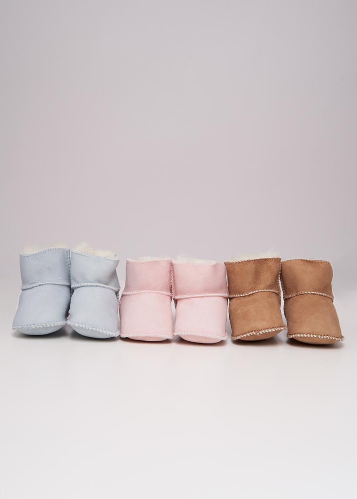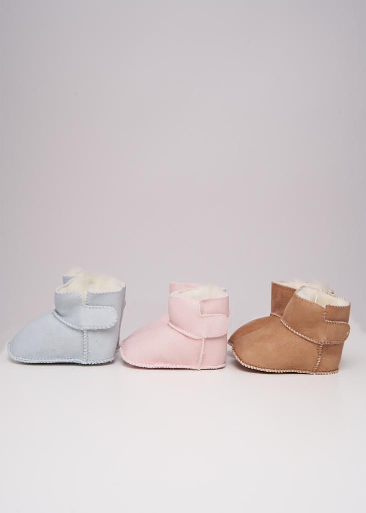Baby Lammfell Boots mit Klettverschluss und weicher Sohle.