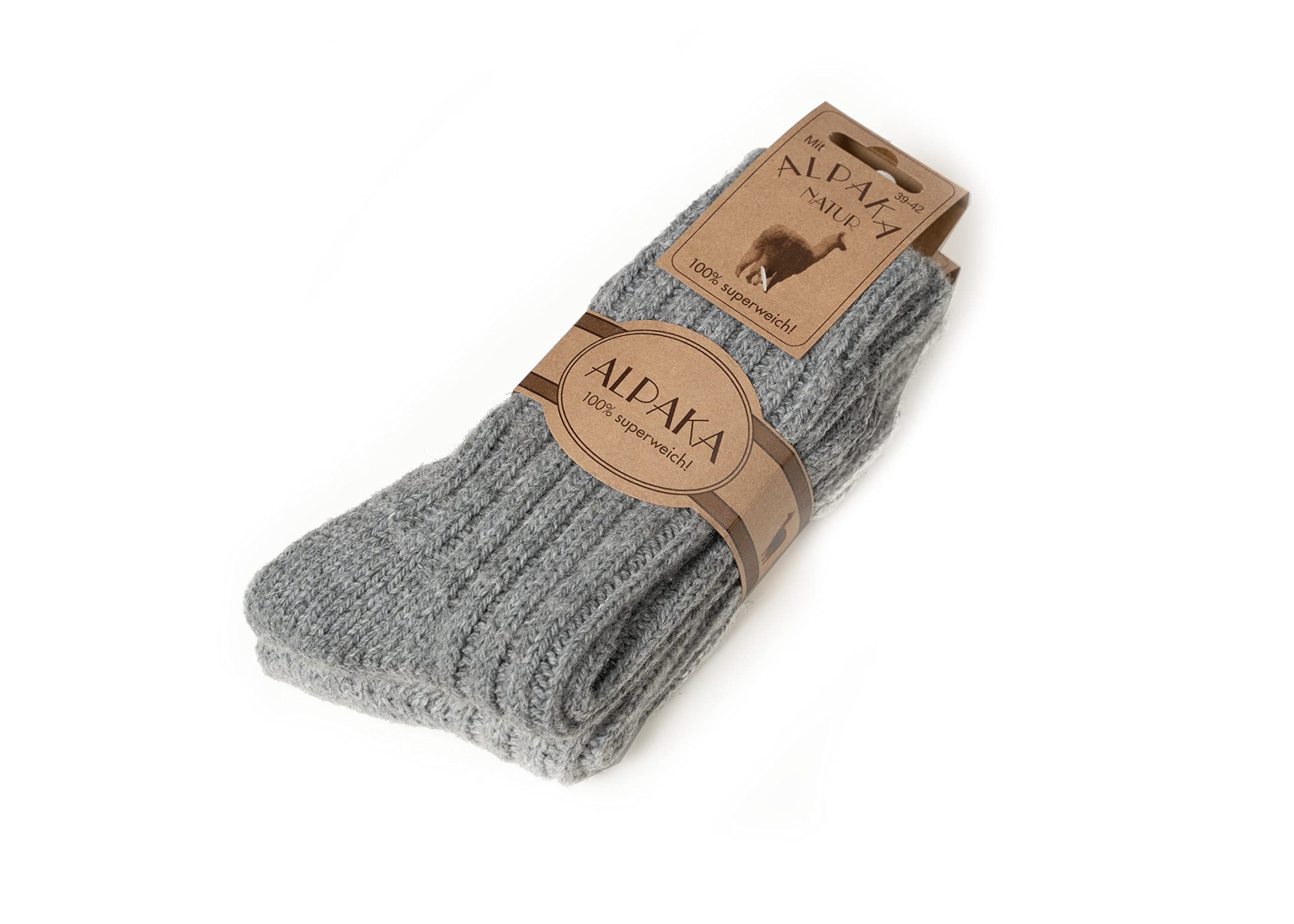 2 Paar Alpaka Socken Herren Und Damen - Dicke Wollsocken Mit 50% Wollanteil, Natürliche Regulierung Der Fußtemperatur | Grau Gr. 35-38