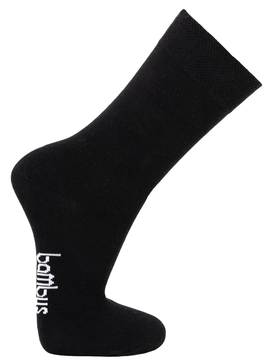 3 Paar Bambus Socken Herren Und Damen Bambussocken In Basic Farben 75% Viskose Seidig Weich Angenehm Zur Haut | Black Gr. 43-46 SOCKEN BAMBUS: Die Socken bestehen aus 75% Viskose (Bambuszellstoff), 22% Polyamid und 3% Elsathan. Sie sind angenehm weich für die Haut und garantieren einen perfekten, faltfreien Sitz und eine optimale Passform. Erhältlich in den Größen 35-38, 39-42, 43-46 und 47-50 und in verschiedenen Farbvarianten. ANGENEHMES SCHUH- UND FUßKLIMA: Gegenüber herkömmlichen Baumwollsocken haben die Bambus-Viskose Socken den Vorteil, dass Feuchtigkeit besser nach außen geleitet wird. Dies hilft dabei im Sommer unangenehme Schweißfüße zu reduzieren. Dies hilft dabei im Sommer unangenehme Schweißfüße zu reduzieren und sorgt für ein angenehmes Fußklima. BEQUEME PASSFORM: Diese Socken ohne Gummibund passen sich ideal an ihren Fuß an. Das weiche Material mit Verstärkungen an Ferse und Spitze sorgt für angenehmen Halt ohne Druckstellen. Für hohen Tragekomfort den ganzen Tag, egal ob Sport, Freizeit oder bei der Arbeit. GEEIGNET FÜR JEDE JAHRESZEIT: Egal ob im Sommer oder Winter. Mit diesen Bamboo Socks haben sie das ideale Fußklima zu jeder Jahreszeit. IDEAL ALS GESCHENK: Ideal als Geschenk für Familie, Freunde und Bekannte. Egal ob zu Weihnachten, Geburtstag oder Nikolaus. Perfekt für aktive Menschen. Die Bambus Socken werden in der Türkei produziert und sind erhältlich in 3er Paar-Bündeln pro Farbe.