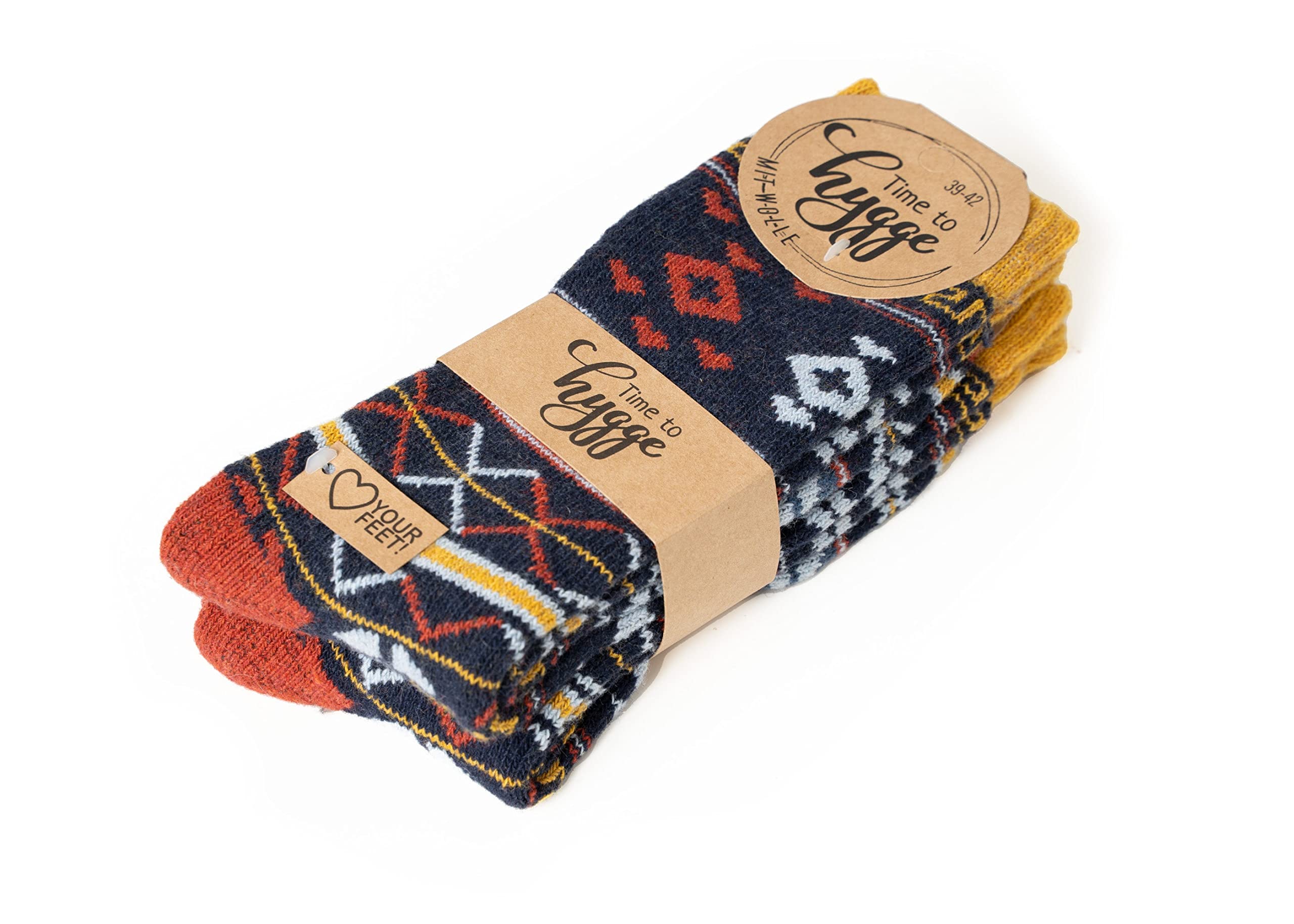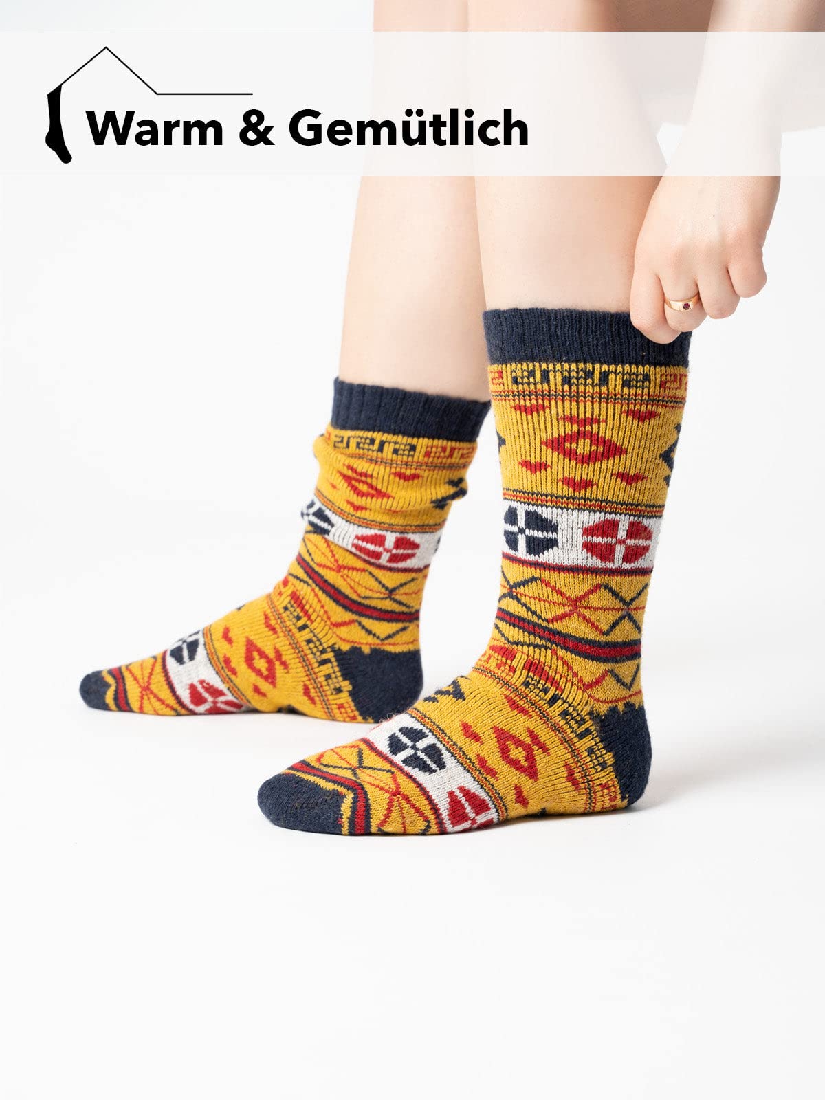 HYGGE WOLLSOCKEN DAMEN UND HERREN: Hochwertige Norweger Socken mit buntem Muster. Wintersocken für Herren, Damen und Teenager. Hygge ist Bestandteil der dänischen Kultur und bedeutet so viel wie Wohlbefinden. Dicke Socken für kuschelig warme Füße während der kalten Jahreszeit.IDEAL ALS GESCHENK: Warme Socken Herren und Damen, ideal als Geschenk für Familie, Freunde und Bekannte. Egal ob zu Weihnachten, Nikolaus oder Geburtstag. Als Weihnachtsgeschenke Socken oder Nikolausgeschenk. Perfekt für Menschen mit Liebe zu Norwegen, norweger Socken, wool socken, und Skandinavischen Designs. Größen: 35-38 ; 39-42 ; 43-46 | Farben: 2xRost; 2xSenf; 2xNavy