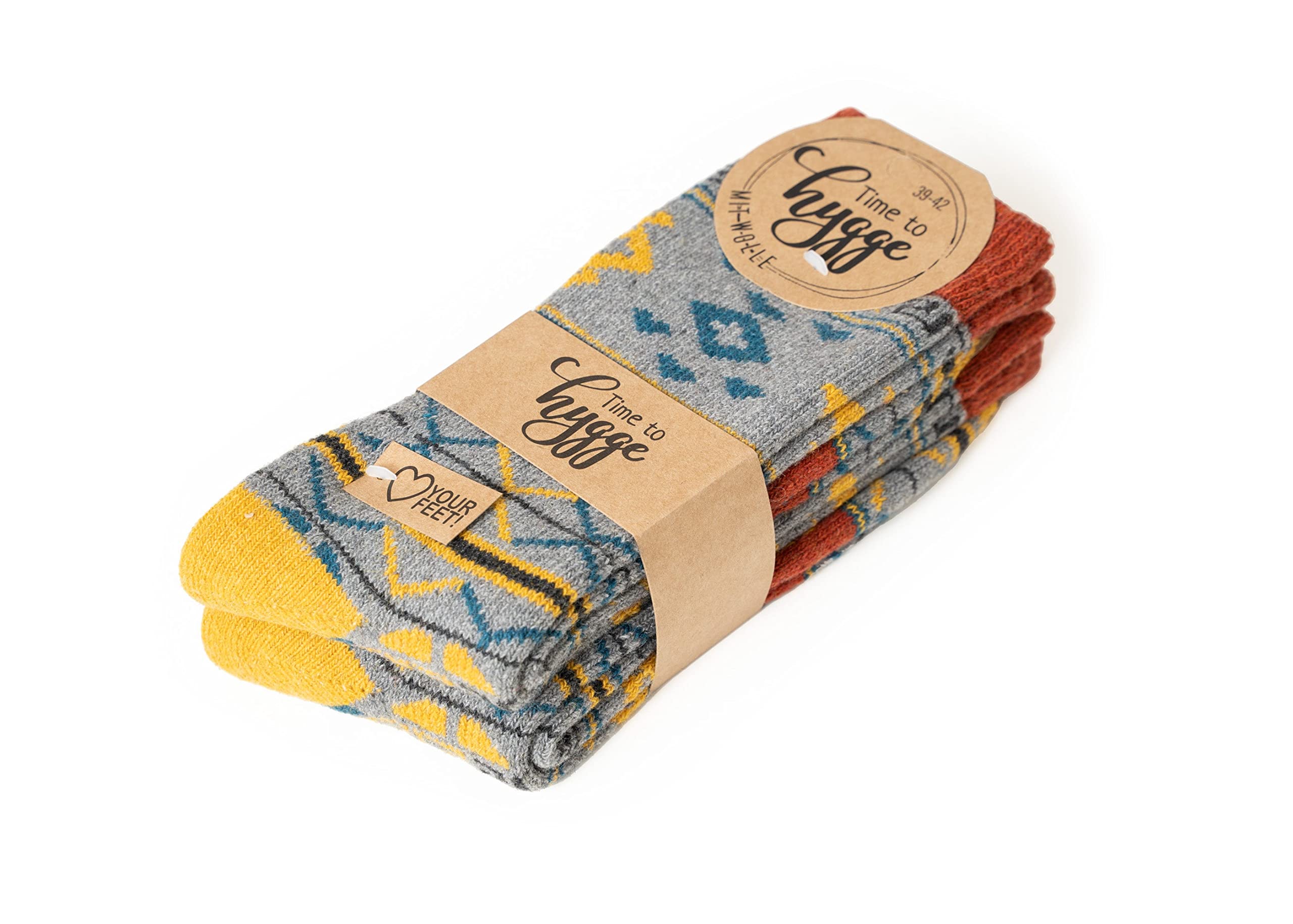 2 Paar 45% Wollsocken Moderne Bunte Ethno Design
