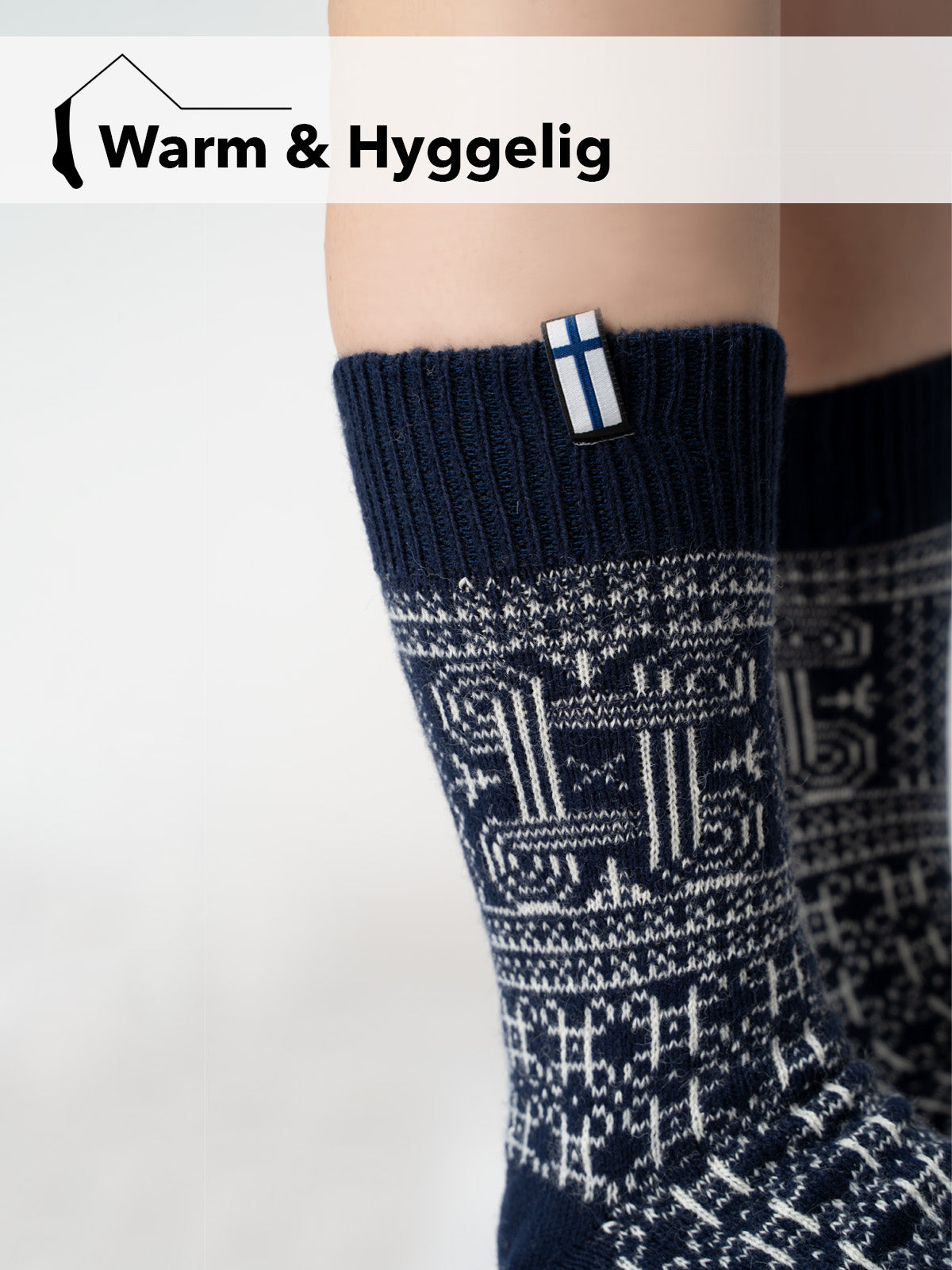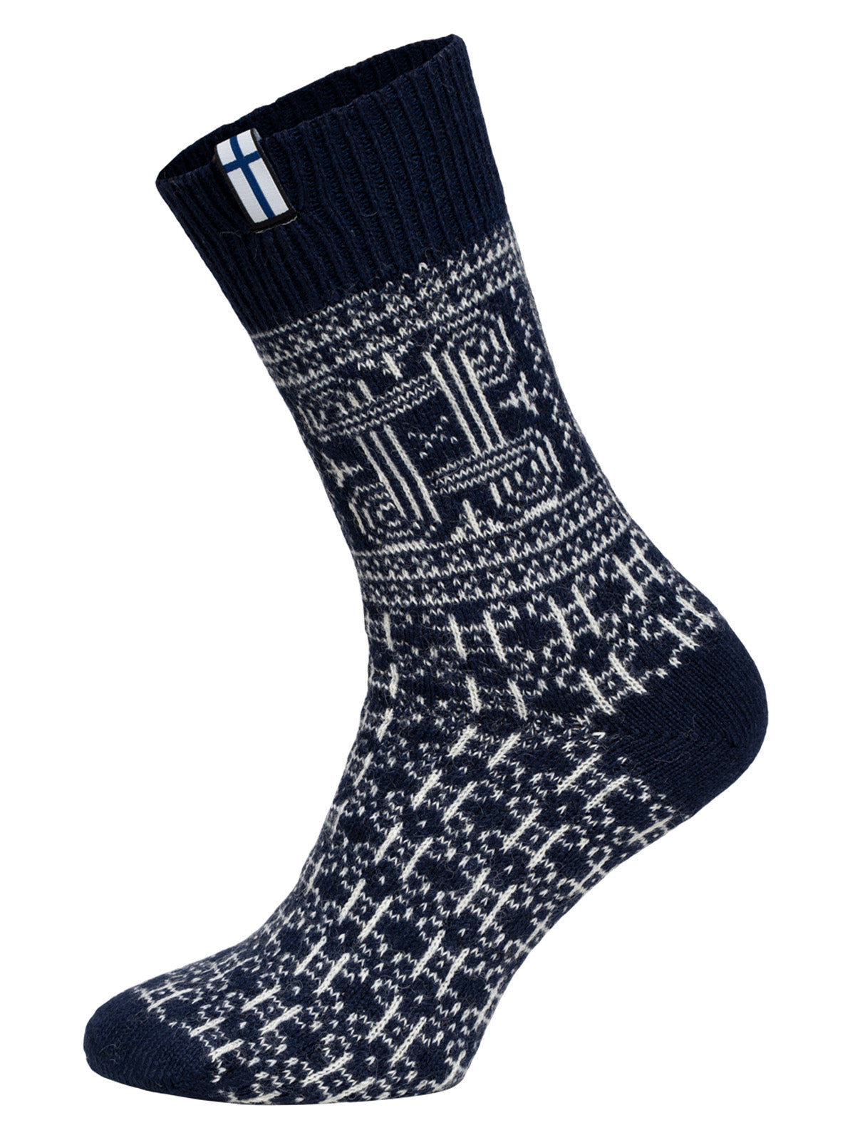 Skandinavische Wollsocke "Finnland" Glückssymbol