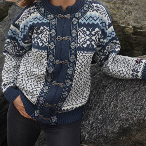 Norweger Jacke mit Haken-Verschluss - 100% Reine Norwegische Schurwolle