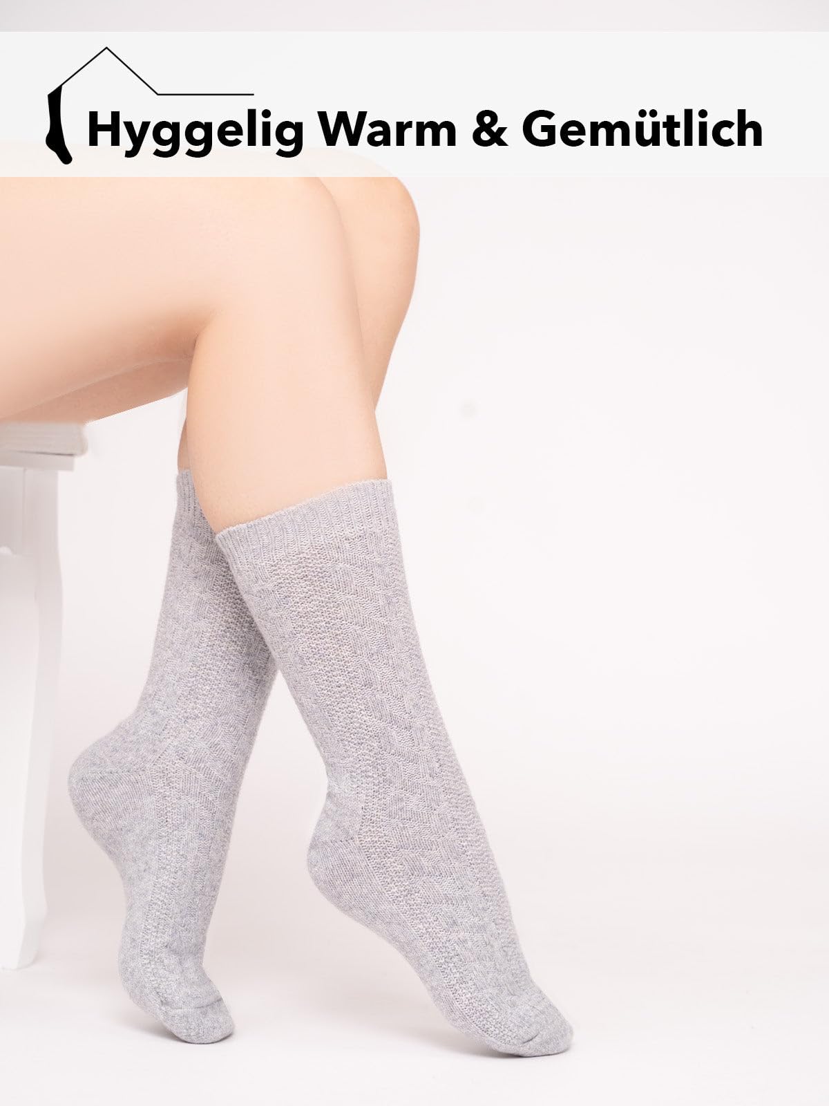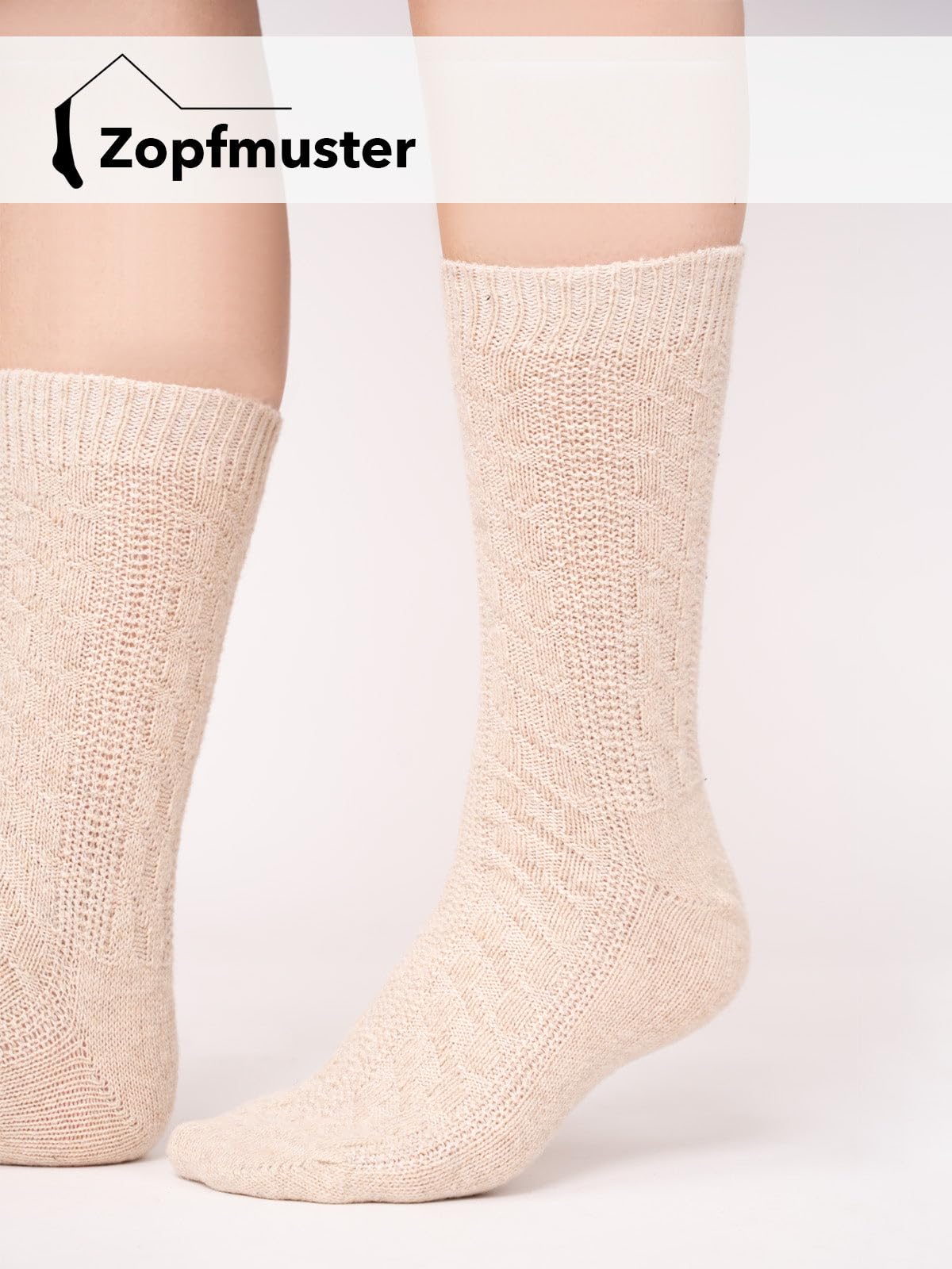 Ein Paar Wollsocke aus 70% Lammwolle mit Zopfmuster Basic